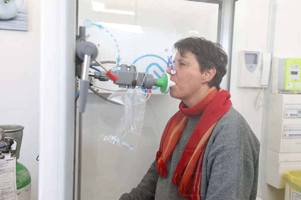 Mesure des paramètres respiratoires, cardiaques, musculaires et métaboliques, pour rechercher les causes de dyspnée (essoufflement) à l’effort, pour évaluer le retentissement d’une maladie sur l’organisme, pour prévoir et prévenir les risques post-opératoires d’une intervention, pour établir un programme personnalisé d’un ré-entraînement à l’effort pour les maladies chroniques.